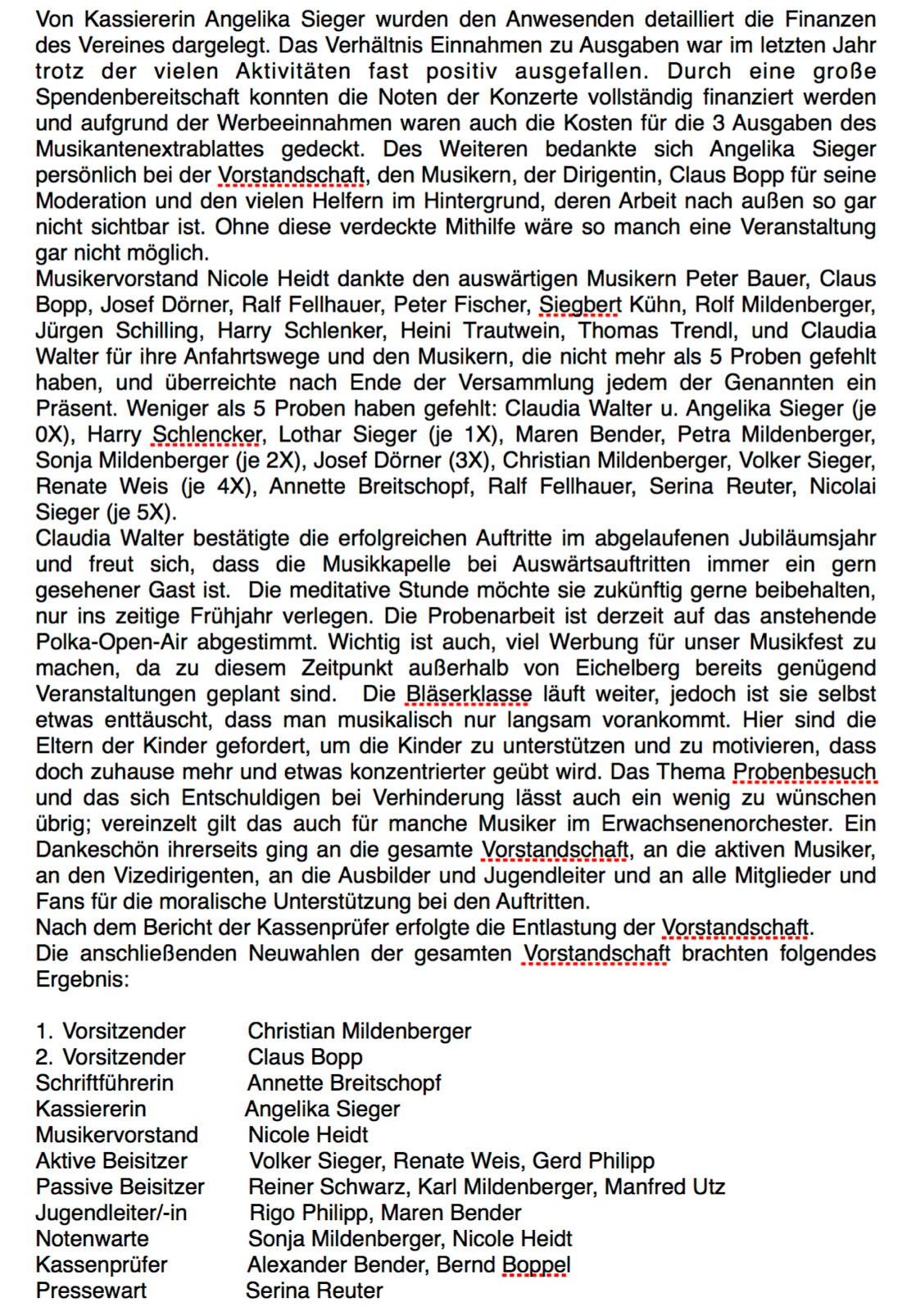 Alle Jahre wieder lassen wir unsere musikalische Spielzeit Revue passieren. Vieles wurde ja schon berichtet. Begonnen haben wir mit dem Faschingsnachmittag im Clubhaus des SV Eichelberg. Es folgte das Konzert im Kursaal in Bad Rappenau, die Jahreshauptversammlung, das Schlachtfest in der Kerschdekipperhalle in Unteröwisheim, wo wir die Gäste vier Stunden unterhielten, sowie der 3. musikalische Elternabend in der Alten Schule. Dazwischen lud uns Otto Breitschopf anlässlich seines 50. Geburtstages zu sich nach Hause ein und gerne sind wir seiner Einladung gefolgt.