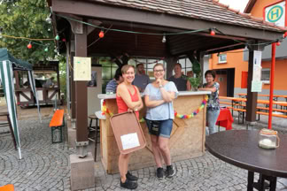 Es war ein Leichtes auf einer so schön und reichlich dekorierten Bühne aufzuspielen. Und so hatte sich Dirigentin Claudia Walter für das 9. Open Air Polka Festival etwas ganz Besonderes ausgedacht. In den abendlichen Musikproben wurden für dieses Jahr viele Originalkompositionen der ganz großen Meister der Blasmusik aufgelegt und einstudiert. Viele Originalkompositionen der böhmischen und mährischen und tschechischen Blasmusik waren ein Garant für das leicht zu begeisternde Publikum dieses Abends. Unterstützt wurde die schöne Musik auch durch wunderschön eingeblendete Fotos, welche der Musik eine besondere Stimmung verliehen haben. Durch das Programm führte wiederum Claus Bopp.