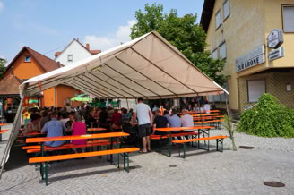 Es folgten drei wunderbare Tage rund um den historischen Ziehbrunnen, der ebenso wie die Bühne, liebevoll geschmückt und so zum gemütlichen Ambiente in der Ortsmitte beitrug.