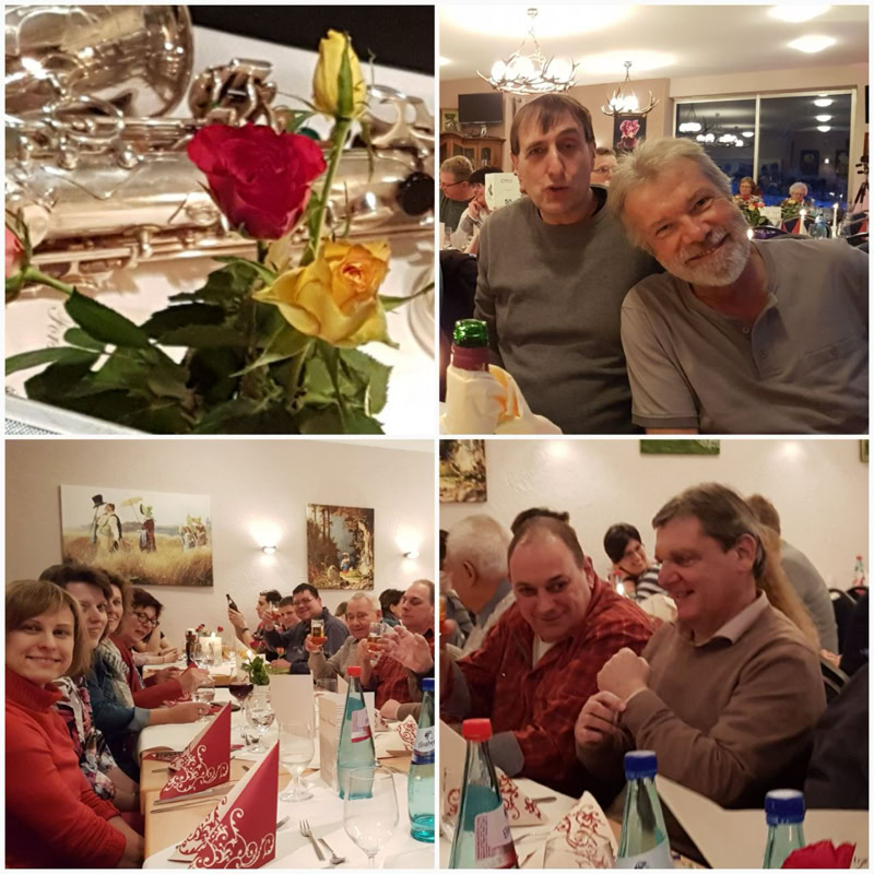 Bei einem Buffet mit hessischen Spezialitäten, diversen musikalischen Darbietungen (unsere Dirigentin Claudia Walter mit dem Saxophon und Ottos Cousin Andreas mit der Gitarre spielten zusammen „An Tagen wie diesen“, der Musikverein Eichelberg und der Musikverein Ockstadt spielten auf, erst einzeln dann gemeinsam) wurde es ein kurzweiliger Abend der leider viel zu schnell vorbeiging.