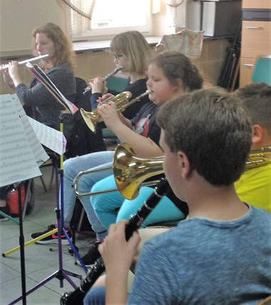 Den Abschluss der unterschiedlichen Palette von Darbietungen bildete die Jugendkapelle aus Östringen, unter der Leitung von Ulrike Förderer.