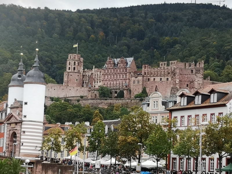 Zunächst fuhren wir mit dem Bus nach Heidelberg. Nach einem kurzen Stadtbummel, gingen wir an Bord der „Weissen Flotte“ und genossen eine wunderschöne Schiffsfahrt nach Neckarsteinach. Die Fahrt führte uns an den bekannten Sehenswürdigkeiten und Wahrzeichen Heidelbergs vorbei. Wir fuhren unter der „Alten Brücke“ durch und hatten einen einzigartigen Blick auf Schloss Heidelberg mit seiner imposanten Gartenanlage. Wir passierten auch das Benediktinerkloster „Stift Neuburg“ und erlebten wie das Schiff in den Schleusenanlagen Heidelberg und Neckagemünd zunächst um 2,60m und später erneut um 3,90 m angehoben wurde.