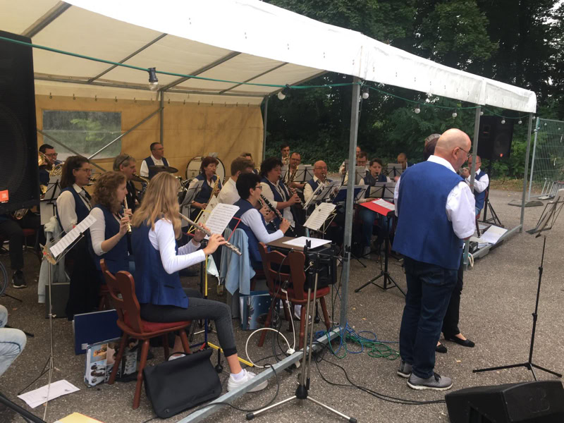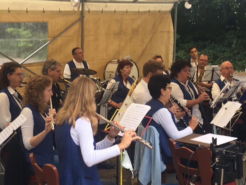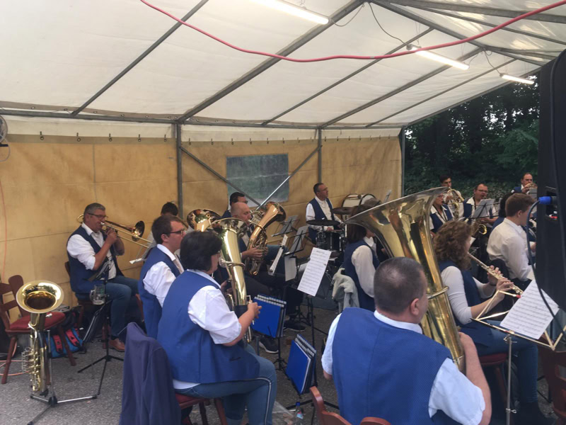 Bei strahlendem Sonnenschein und zur Freude aller Anwesenden spielten wir einige Musikstücke aus unserem Repatoire. Die Begeisterung war sehr groß und selbstverständlich wurde auf Wunsch auch eine Zugabe gegeben.