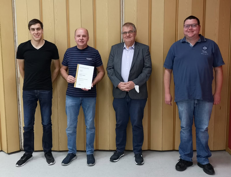 Im weiteren Verlauf fanden die vereinseigenen Ehrungen statt. Folgende aktive oder passive Mitglieder wurden geehrt und haben eine Ehrennadel mit Urkunde erhalten: