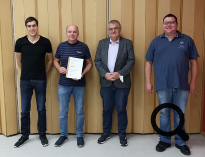 Volker Sieger für 50 Jahre mit der großen goldenen Ehrennadel mit Urkunde vom Bund Deutscher Blasmusikverbände