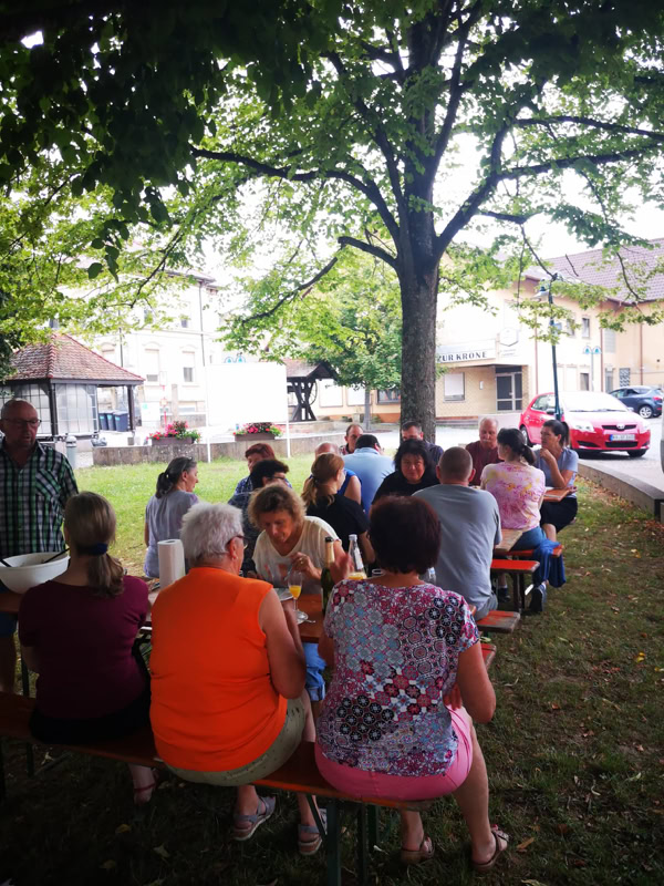 Angeboten wurden Wildgulasch, Schnitzel, Knödel mit Pilzrahmsoße und Wurstsalat. Auch ein großes Kuchenbuffet hat nicht gefehlt. Gab es am Anfang aufgrund eines Stromausfalls in der Küche einige Anlaufschwierigkeiten, so wurden wir nach Behebung der „Panne“ regelrecht überrannt. Das Angebot unserer Speisekarte begeisterte jeden Besucher und selbst die vielen Kuchen und Torten waren nach kürzester Zeit ausverkauft! Wer seine Mahlzeit lieber zuhause zu sich nehmen wollte, holte sein Essen nach vorheriger Bestellung ab.