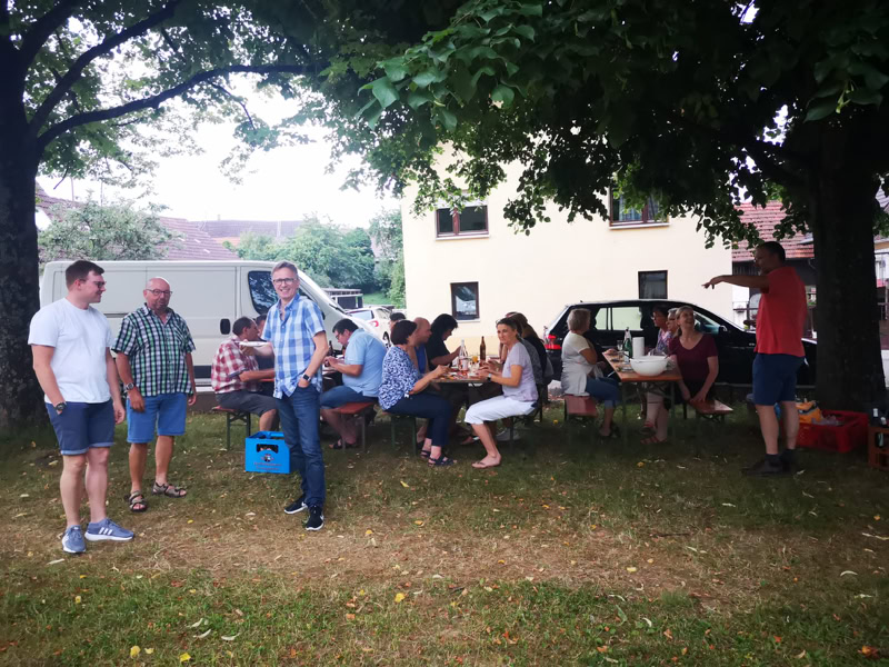 Vergangenen Donnerstag lud uns unser Baritonist Peter Fischer zu Wurstsalat und kühlen Erfrischungsgetränken ein, um mit ihm auf seinen 70. Geburtstag anzustoßen.