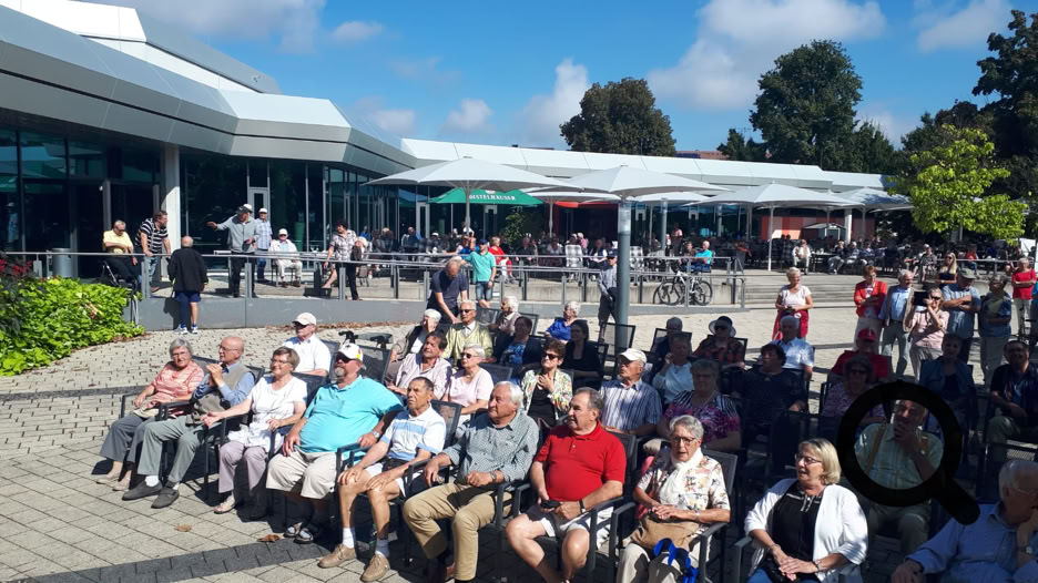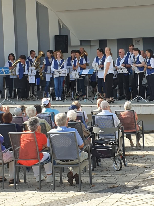 Am vergangenen Sonntag konnten wir mit unserem Repertoire und mit unserem Gesangsduo Angelika und Lothar Sieger ein großes Publikum begeistern! Das Wetter war perfekt und so fand das Frühkonzert auf der Musikmuschel am Kurhaus statt. Die Gäste sangen, klatschten und tanzten zu unserer Musik und wie wir sehen konnten, kann ein Rollator auch ein sehr guter Tanzpartner sein! Natürlich wurden mehrere Zugaben verlangt, die wir sehr gerne spielten.