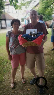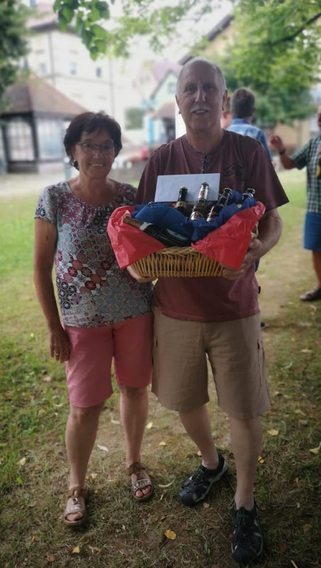 Rasch waren ein paar Tische und Bänke aufgestellt und das tolle Ambiente verhieß ein schöner Abend zu werden. Zu den nachträglichen Glückwünschen überreichte Angelika Sieger dem Jubilar noch einen Geschenkkorb.
