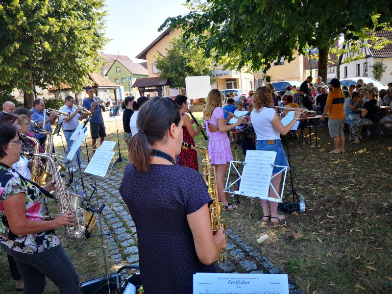 Am vergangenen Samstag waren wir zu Gast beim Kraichgau-Fanfarenzug in Mühlhausen. Bei herrlichem Sommerwetter konnten wir die Gäste des Mühlenfestes für zwei Stunden mit unserem Repertoire und dem Sängerduo Angelika und Lothar Sieger begeistern!