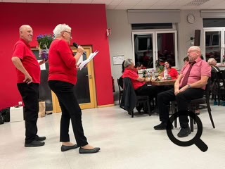 Ein weiterer Höhepunkt war ein Liedvortrag für Lothar und Martin vom familieneigenen „Kerschdechor“. Mit der Melodie des bekannten Evergreens „Im Wagen vor mir fährt ein junges Mädchen“ gelang ihnen ein pointierter und heiterer Gesangsvortrag, der noch einige weitere amüsante Familieninterna preisgab.