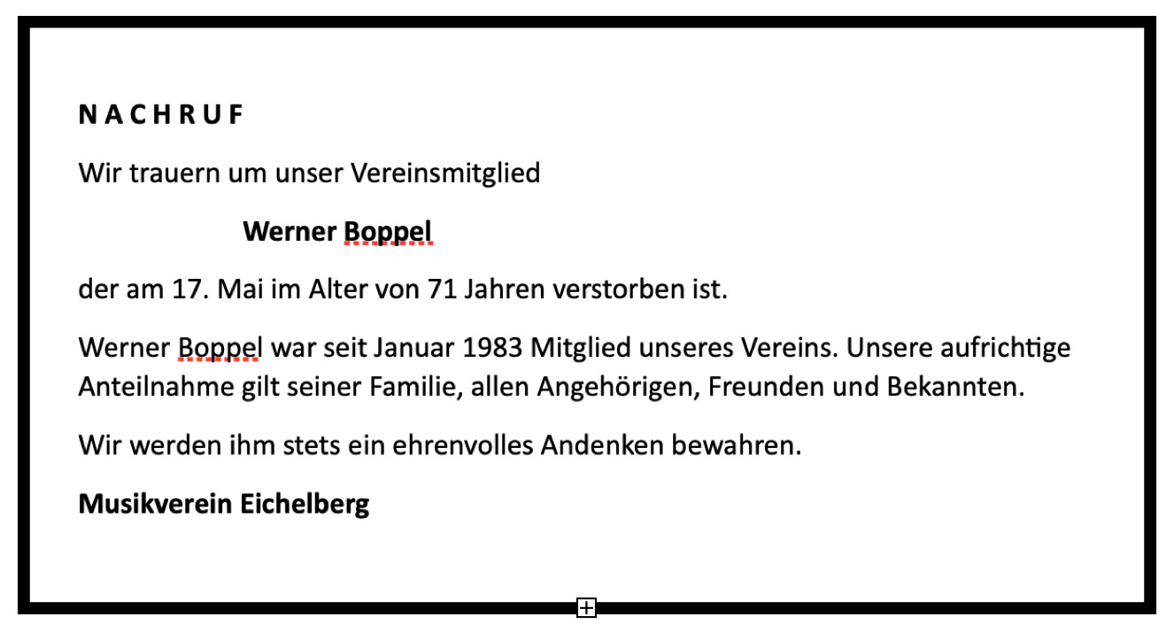 Manfred ist ein geschätzter und treuer Freund des Musikvereins Eichelberg. Wir spielten einige Musikstücke für ihn, die ihn, nicht zuletzt auch wegen der berührenden Rede von Kassiererin Angelika Sieger, sichtlich bewegten.