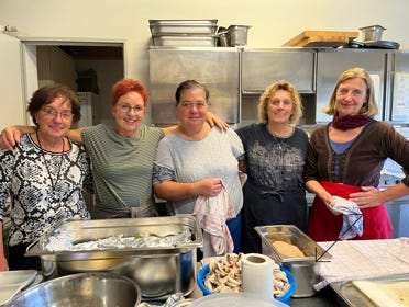 Angeboten wurden Wildgulasch, Schnitzel, Knödel mit Pilzrahmsoße und Wurstsalat. Auch ein großes Kuchenbuffet hat nicht gefehlt. Gab es am Anfang aufgrund eines Stromausfalls in der Küche einige Anlaufschwierigkeiten, so wurden wir nach Behebung der „Panne“ regelrecht überrannt. Das Angebot unserer Speisekarte begeisterte jeden Besucher und selbst die vielen Kuchen und Torten waren nach kürzester Zeit ausverkauft! Wer seine Mahlzeit lieber zuhause zu sich nehmen wollte, holte sein Essen nach vorheriger Bestellung ab.