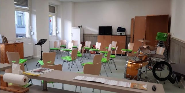 Im Januar 2021 mussten wir unseren Raum in der “Alten Schule” ausräumen, damit die Renovierungs- bzw. Sanierungsarbeiten beginnen konnten. Coronabedingt fanden zunächst keine Proben statt. Ab 01. Juli 2021 durften wir unter Einhaltung sämtlicher Hygienevorschriften im großen Saal der “Krone” mit dem musizieren beginnen. Anfangs nur bei schlechtem Wetter, dann ab Herbst 2021 regelmäßig mit kurzen Unterbrechungen wegen steigender Coronainfizierungen.